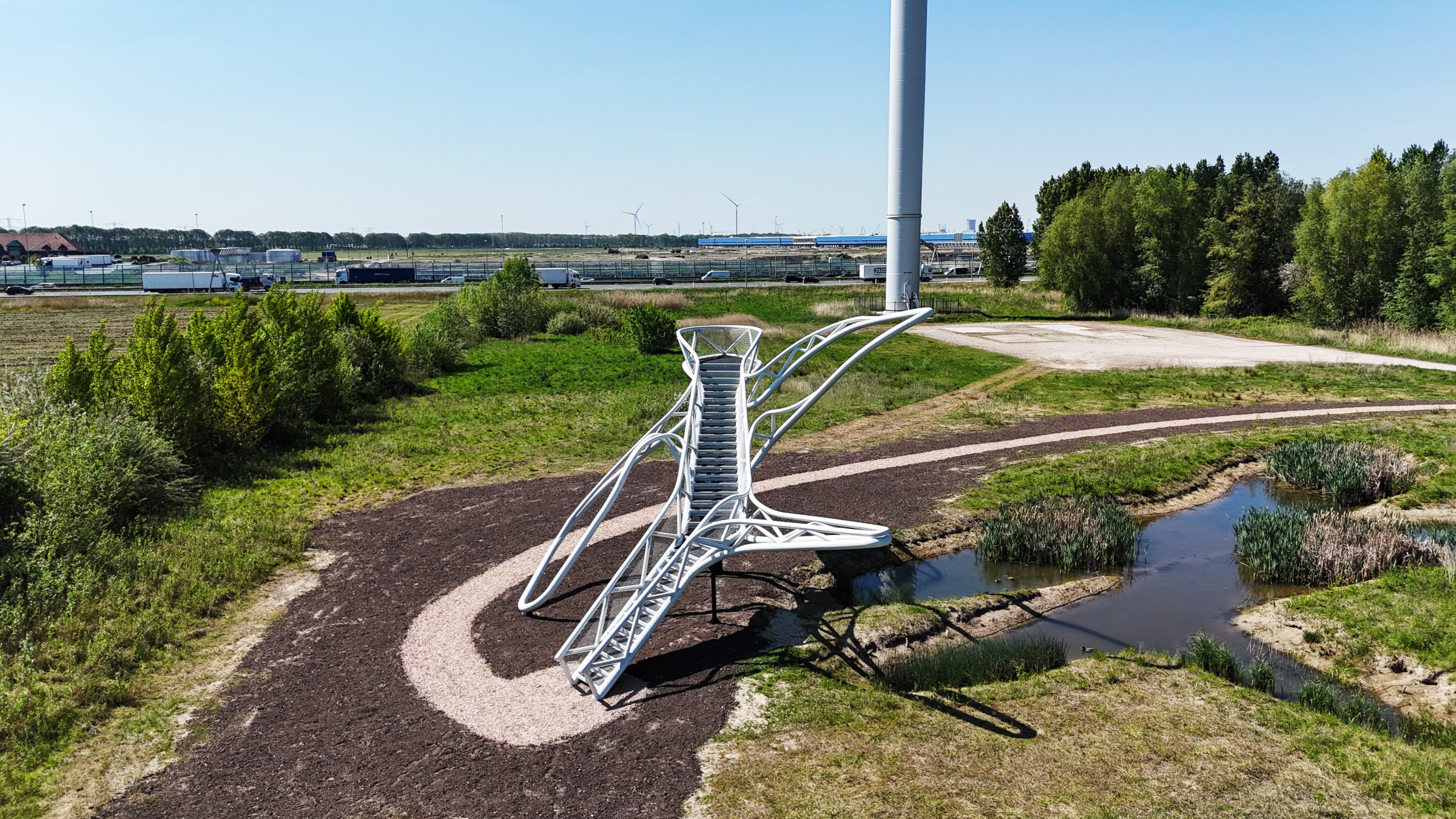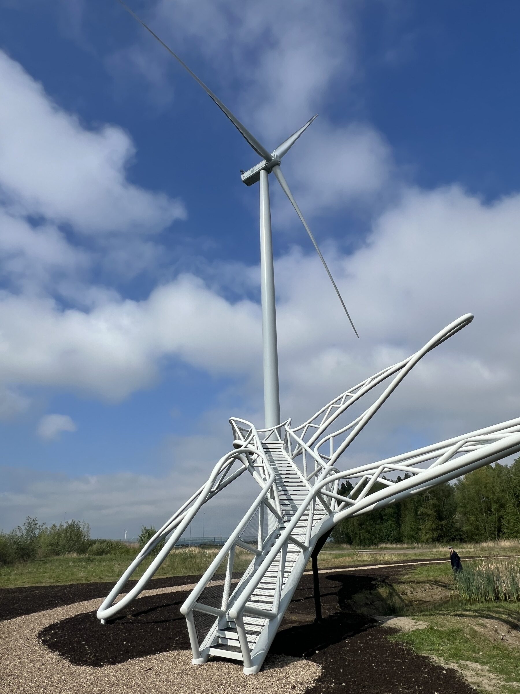 De uitkijktoren is ontworpen door Studio Jeroen Everaert en werd architectonisch uitgewerkt door Sander Boer van Studio MAUC. De toren staat aan de rand van een waterpartij in de vorm van zijn eigen slagschaduw. Wie de toren beklimt, voelt de wind op hoogte en kijkt uit op een turbine die energie opwekt voor 5.000 huishoudens.